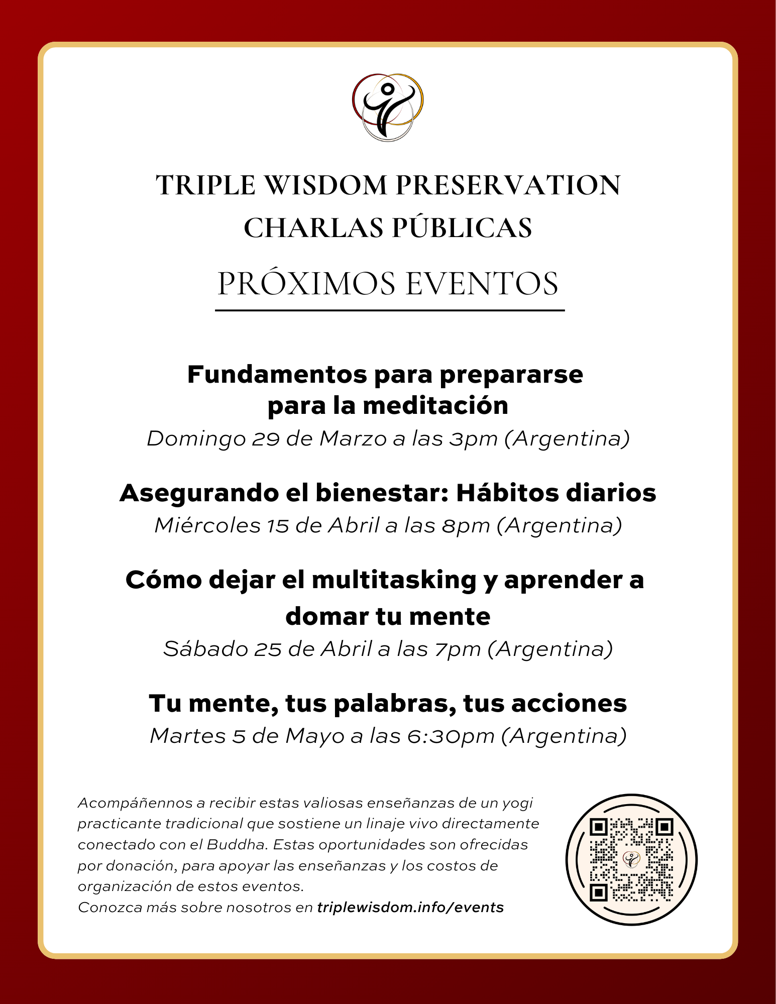 Upcoming Dhamma Talks — Disponibles en español